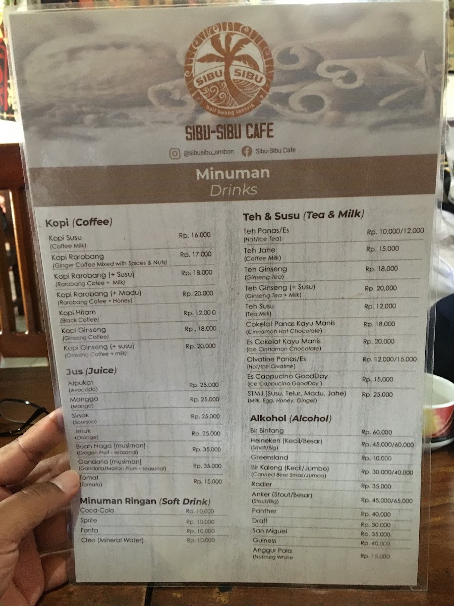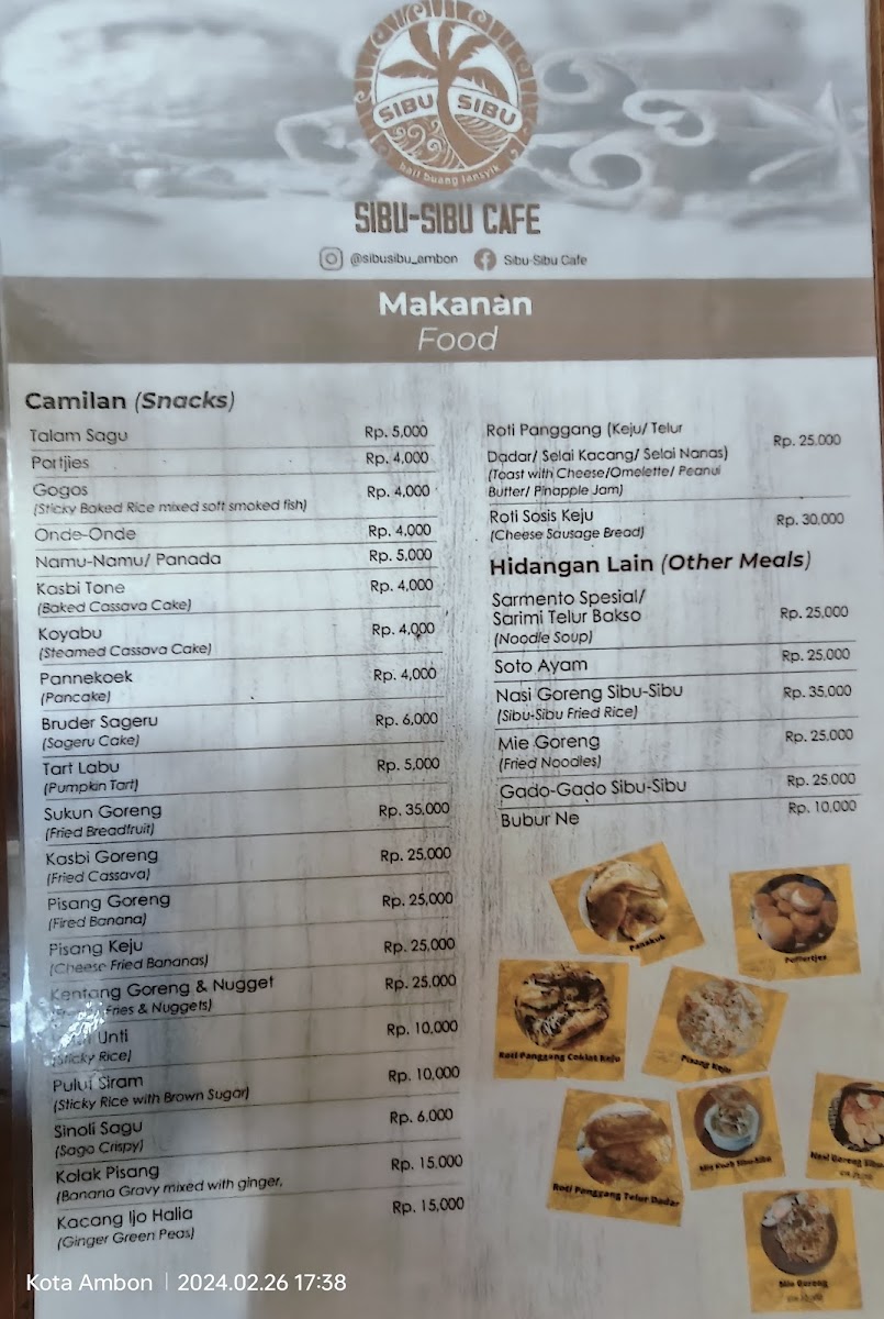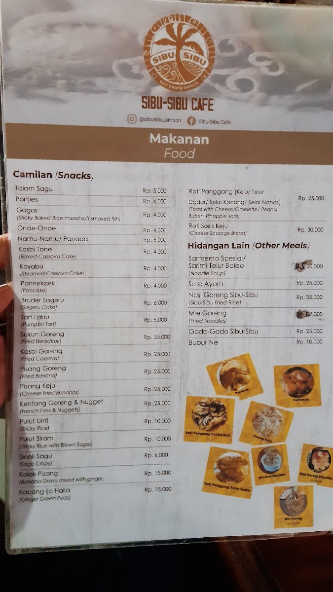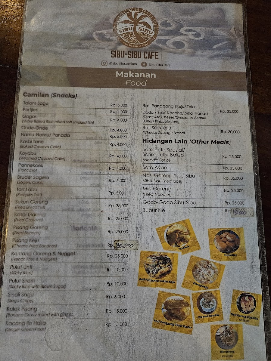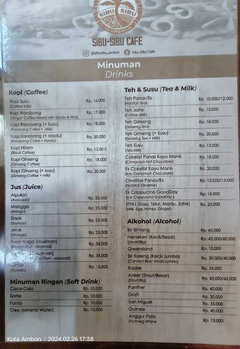 At Rumah Kopi Sibu Sibu, Ambon, the menu is a celebration of local flavors and aromatic brews. Nestled in the heart of Ambon, this cozy spot offers a range of coffee blends that highlight the rich taste of Indonesian beans, alongside freshly prepared dishes that cater to every craving. Whether you’re in the mood for a light snack or a hearty meal, the options here are sure to satisfy. From traditional Indonesian comfort food to unique fusion dishes, every bite is a journey through the vibrant culinary culture of Maluku. Pair your meal with a refreshing iced coffee or a smooth espresso for the perfect dining experience.